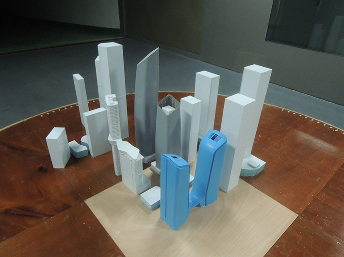 [项目时间]:2013年 [项目地点]:江苏南京 [项目概况]:超高层建筑群,包括T1~T3共3栋塔楼及商业裙楼。T1塔楼290m,T2塔楼198m,T3塔楼183.5m。这是方案更改后的第3次试验。项目位于南京市河西CBD。