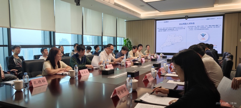 随后,双方围绕学习贯彻党的二十届三中全会精神、校企合作等核心议题展开了深入座谈。数字广东公司党委委员、副总经理徐延林介绍了公司在党建工作与科技创新方面的基本情况。张征书记则围绕学院建设、党建工作、学生培养以及对外合作等方面,详细阐述了学院的基本情况。黄智聪、翁振宇两位副教授进一步介绍了学院学科发展的前沿动态、在产学研合作中的过往经验与潜在机遇,展现了学院在人才培养与科研创新方面的实力。