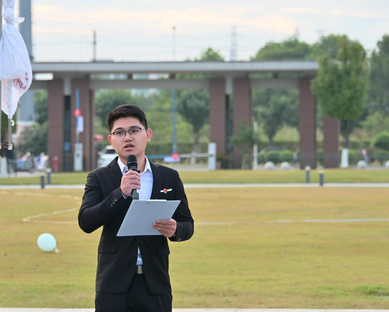 随后,来自吴贤铭智能工程学院2025级机械工程专业的研究生沈凯杰同学发表了国旗下的演讲《从全运服务到科研报国——以青春之力践行时代使命》。他分享了投身第十五届全国运动会等志愿服务的体验,以及在粤北坪石镇追寻校史的经历。他倡议全体同学:一是投身志愿服务:感悟平凡岗位的坚守能汇聚成支撑国家盛事的磅礴力量,在奉献中实现自我成长。二是感悟红色基因:继承甲工先辈的红色精神,以知识武装头脑,坚定信念,努力学习,体会先辈“教育救国”的赤诚,明晰华工“科技报国”的传承,坚定新时代青年使命。三是立志科研报国:牢记“博学慎思 明辨笃行”的校训,将个人理想融入国家发展,依托吴贤铭智能工程学院平台,深耕机器人和智能制造科研,誓将论文写在祖国大地上,以科研创新、实践担当奉献青春。
