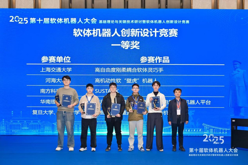 通过本次大会,学院师生充分展示了在软体机器人领域的创新研究成果与扎实技术实力。未来,学院将以此为起点,锚定学校加速挺进全球百强大学的建设目标和学院学科的发展目标,聚焦“机器人+”学科建设,持续优化“156+X”特色交叉学科群,在多个工业应用场景,包括智造、医疗、交通、农林、低空经济,强化科技创新和成果落地,助力学校“双一流”建设与高水平科技自立自强。(图片/第十届软体机器人大会组委会 文字/吴贤铭智能工程学院)