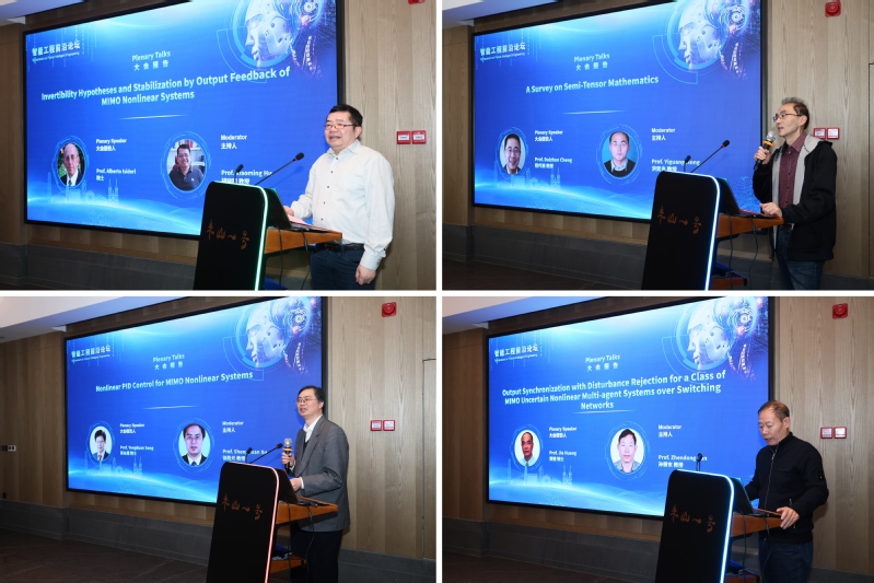 开幕式后,四位顶尖学者作大会主旨报告,分享了他们的最新研究成果与前瞻思考。Alberto Isidori教授阐述了基于扩展观测器的鲁棒控制新框架,该方法突破了传统设计对系统模型的限制,显著增强了非线性控制的适用性。宋永端院士探讨了神经自适应PID控制在不确定非线性系统中的应用,并通过无人系统验证了该方法的有效性。程代展研究员介绍了半张量数学理论体系,展示了其在逻辑网络、博弈论与人工智能等领域解决复杂问题的能力。黄捷院士提出了多智能体协同控制的新框架,该框架突破了以往在系统结构、参数认知和动态约束方面的三大局限,大幅拓展了理论适用范围。