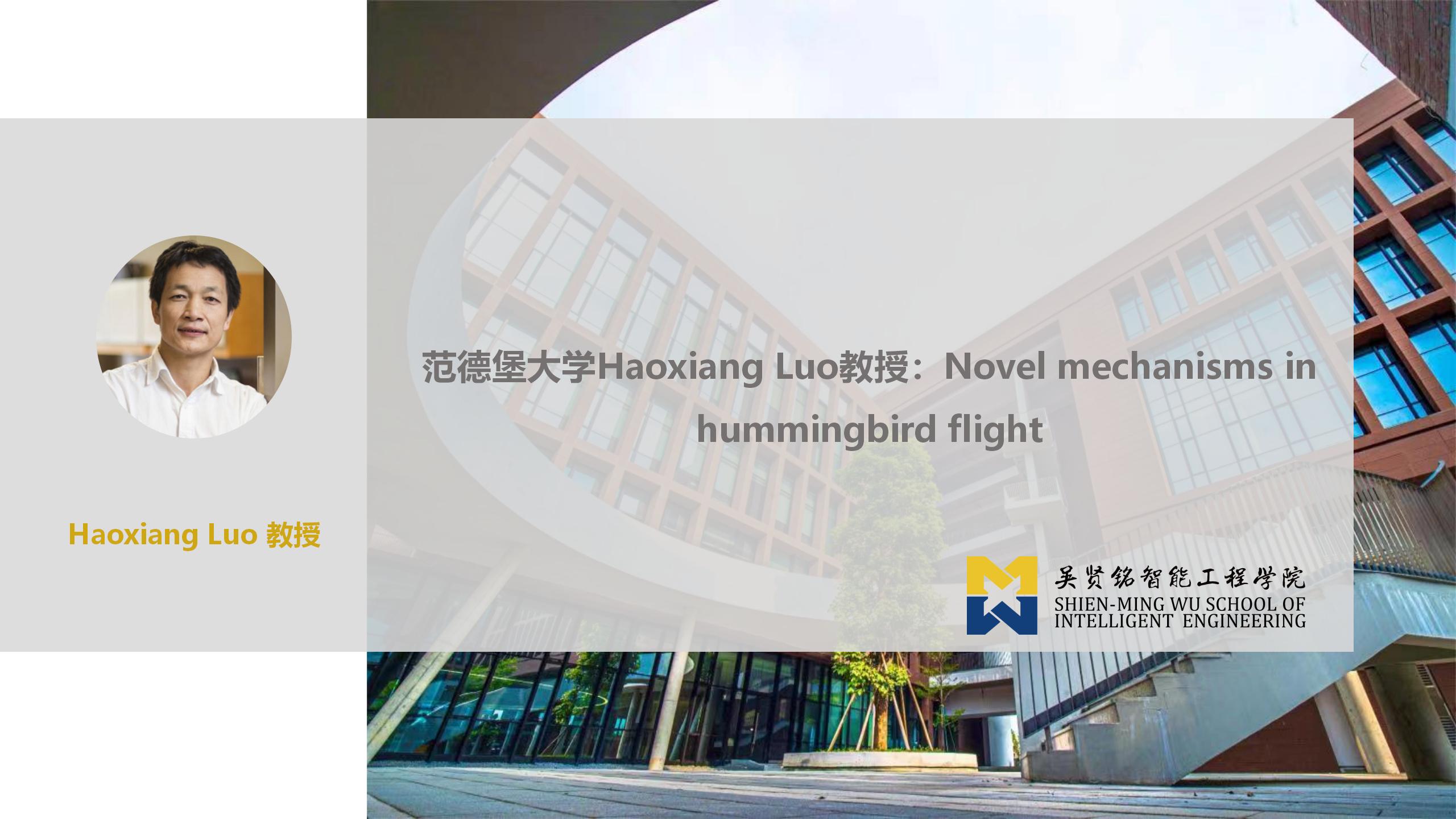 【智远讲坛第6期】范德堡大学Haoxiang Luo教授:Novel mechanisms in hummingbird flight