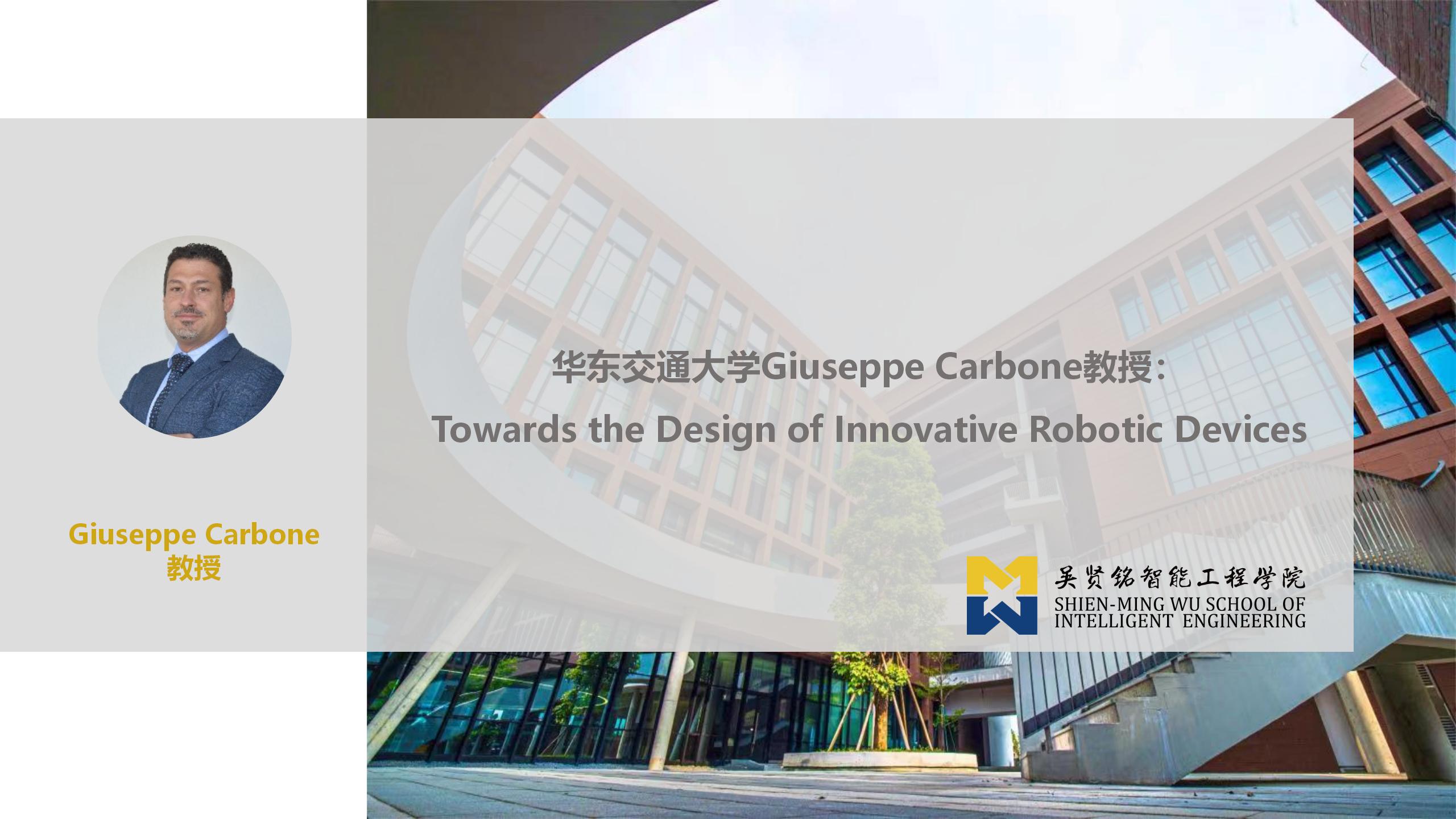 【智远讲坛第3期】华东交通大学Giuseppe Carbone教授:Towards the Design of Innovative Robotic Devices