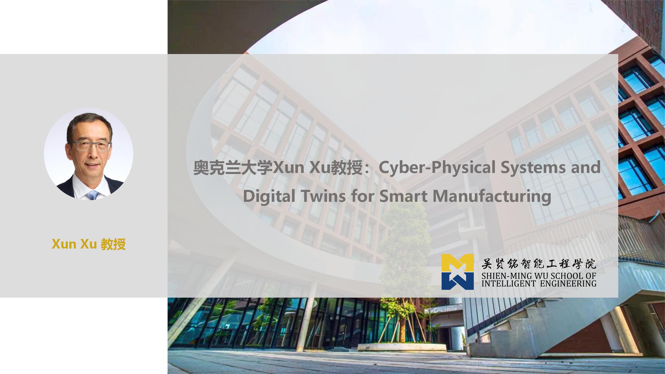 【智远讲坛第5期】奥克兰大学Xun Xu教授:Cyber-Physical Systems and Digital Twins for Smart Manufacturing