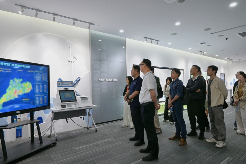 During the visit, delegates toured Guangdong’s Digital Government Operations Center, observing provincial service platforms including Guangdong’s SAC (粤省事), GDTB (粤商通), GDGov (粤政易), and the Government Service Network in operational environments. Students gained firsthand insights into how digital technologies streamline public services.