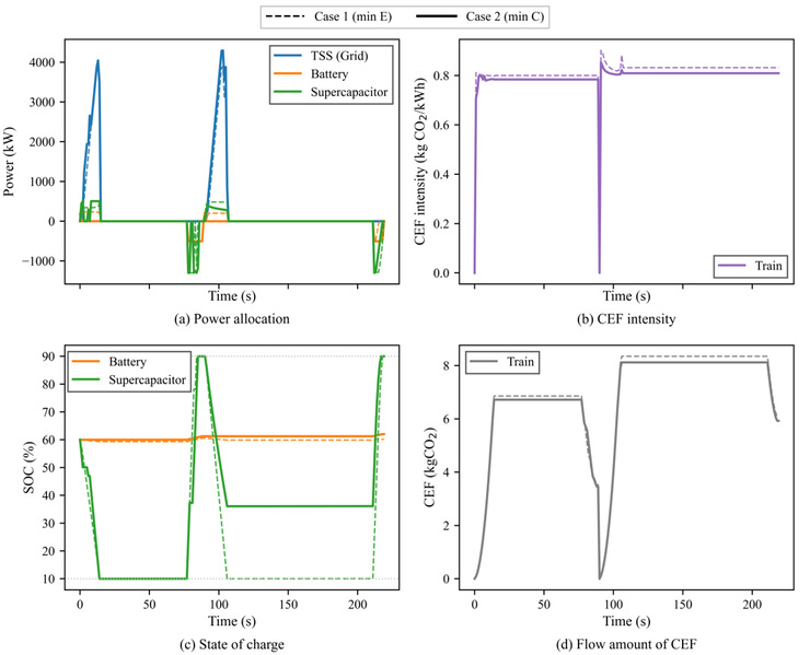 The carbon flow optimization strategy intelligently adjusts the timing of energy storage charging and dischargingbased on real-time carbon intensity rankings of available power sources(traction substation, battery, supercapacitor). These rankings change duringdifferent segments of the journey as regenerative braking energy is recovered.