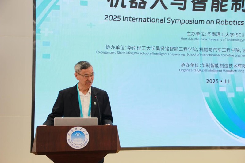 On November 24,the 2025 Robotics and Intelligent Manufacturing Symposium was successfully held at the Shien-Ming Wu School of Intelligent Engineering. Theevent was hosted by South China University of Technology, co-organized by the Shien-MingWu School of Intelligent Engineering, the School of Mechanical and Automotive Engineering, and the Institute of Production Systems at Ruhr University Bochum(Germany), and under taken by HuaZhi Intelligent.