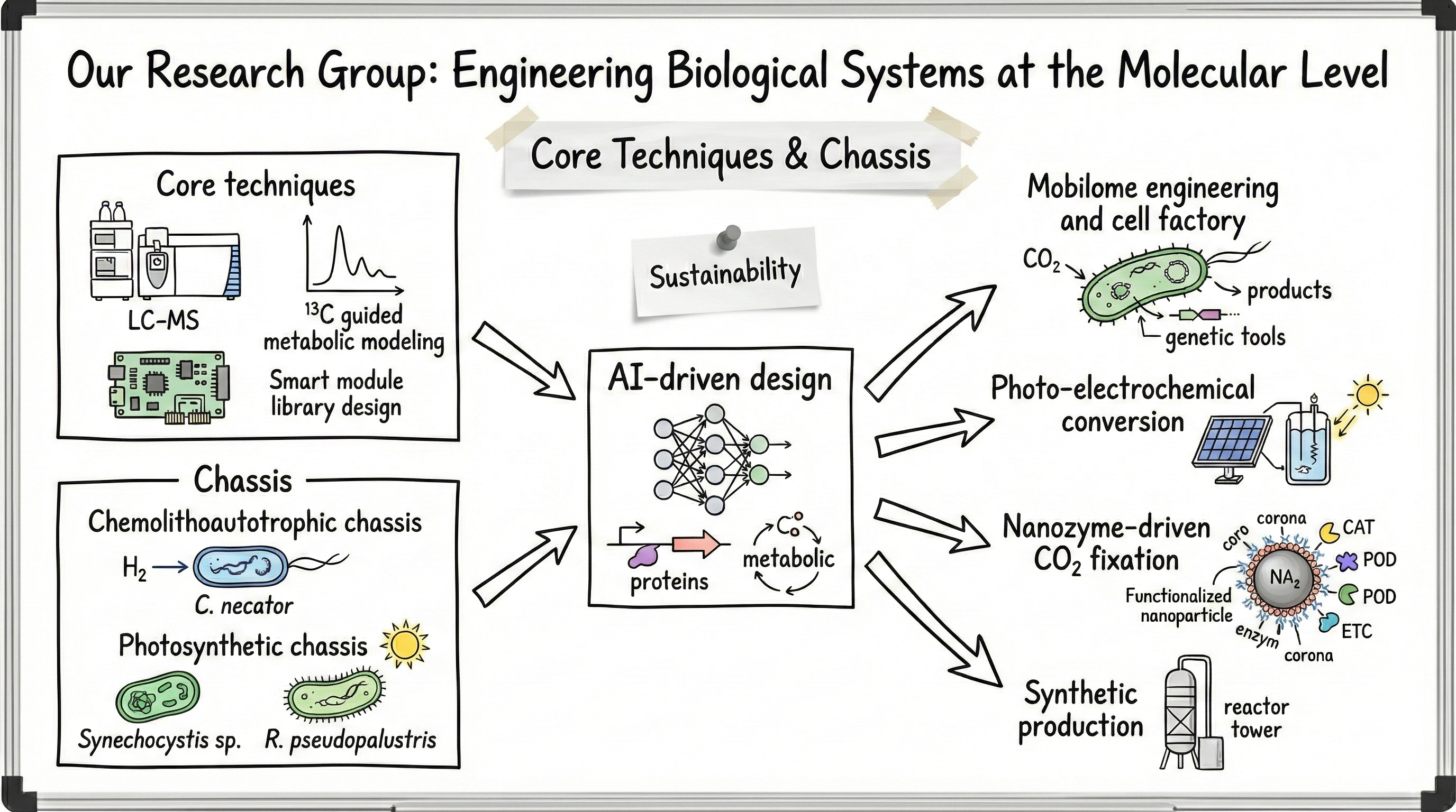 本科研团队致力于从分子层面构建生物系统,以推动可持续发展和生物制造进程。我们着力开发前沿人工智能合成生物学工具及生物杂合平台,以实现二氧化碳的高效增值利用,同时致力于揭示调控微生物细胞工厂的遗传机制与进化原理。[en]Our research group is dedicated to engineering biological systems at the molecular level to advance sustainability and biomanufacturing. We develop cutting-edge AI-driven synthetic biolo...