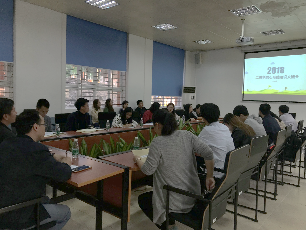 11月23日下午15点,二级学院心育站建设交流会在一号楼1105室顺利举行。学院负责心育站建设的辅导员及心理健康教育与咨询中心教师参加了此次交流会;学校心理健康教育与咨询中心负责人主持本次会议。