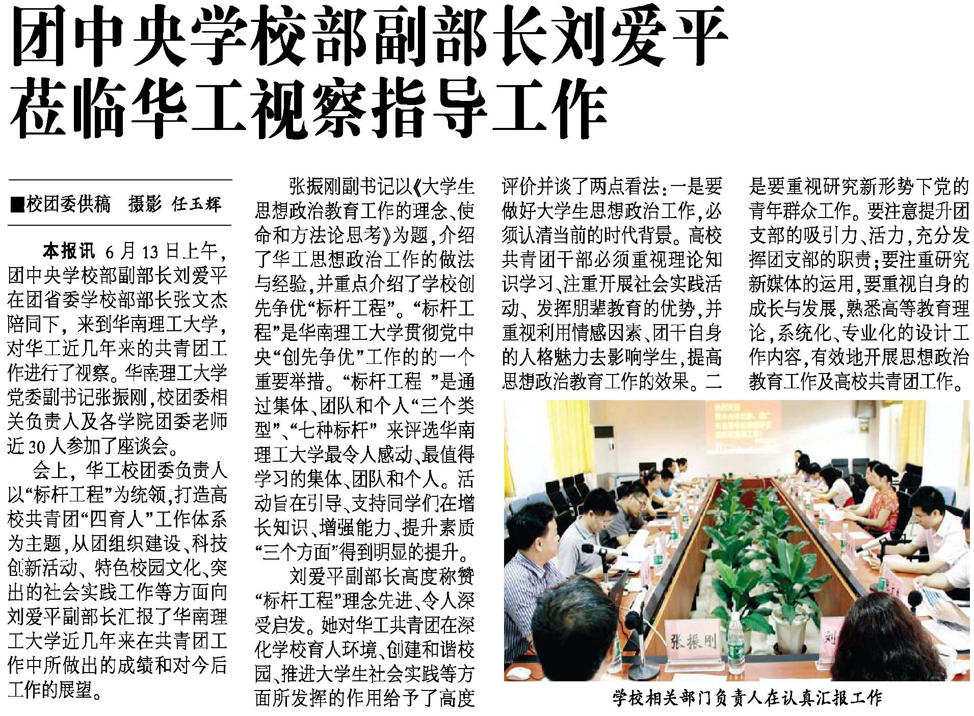 2011年6月13日团中央学校部副部长刘爱平莅临华南理工大学视察指导工作