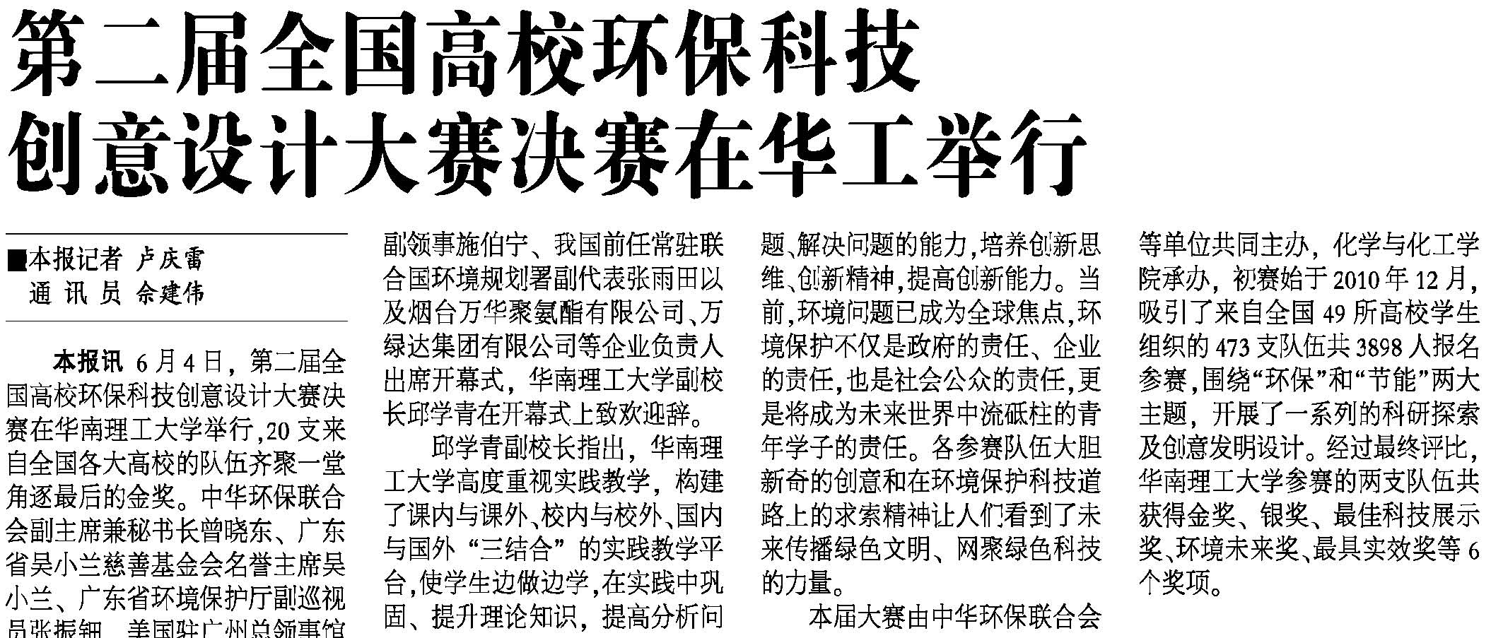 2011年6月4日第二届全国高校环保科技创意设计大赛决赛在华南理工大学举行