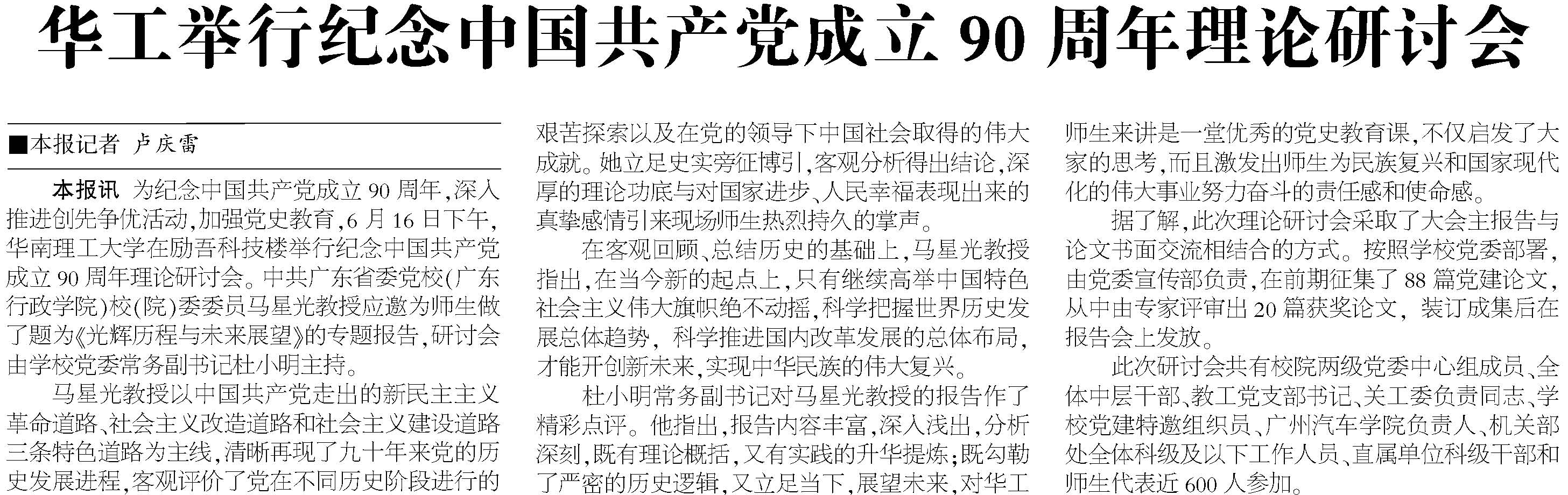 2011年6月16日华南理工大学举行庆祝中国共产党成立90周年理论研讨会