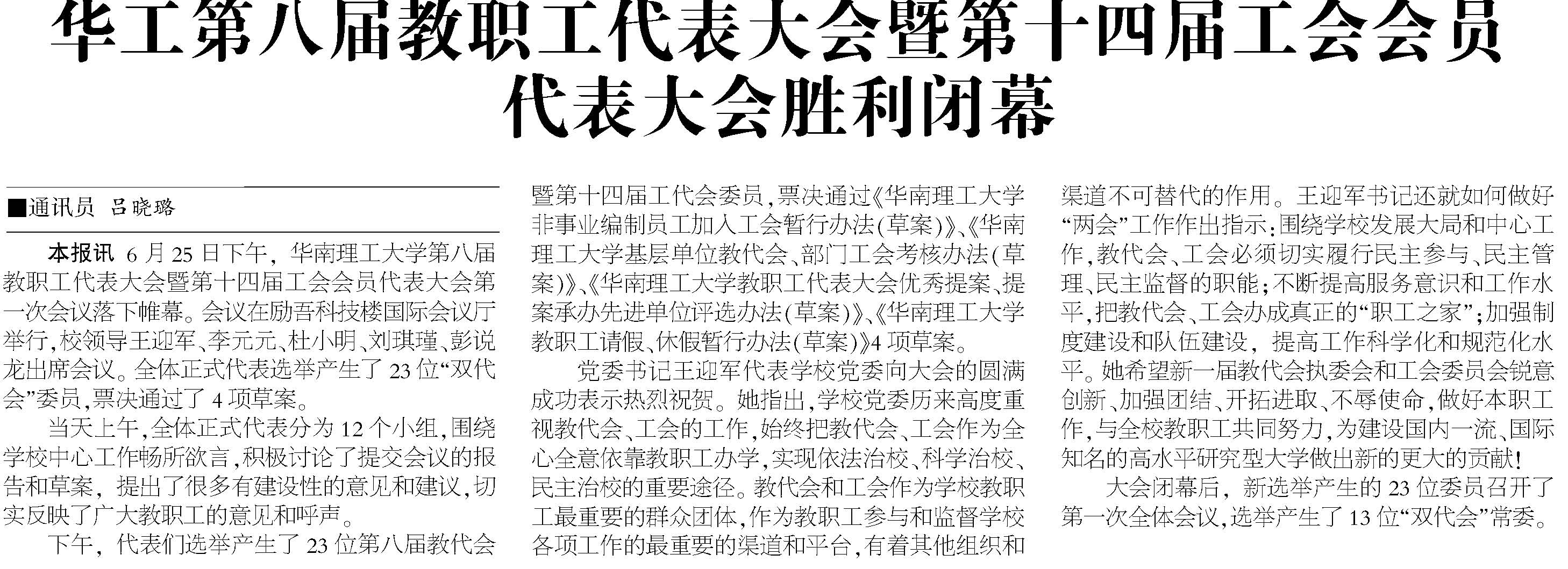 2011年6月25日华南理工大学第八届教职工代表大会暨第十四届工会会员代表大会胜利闭幕