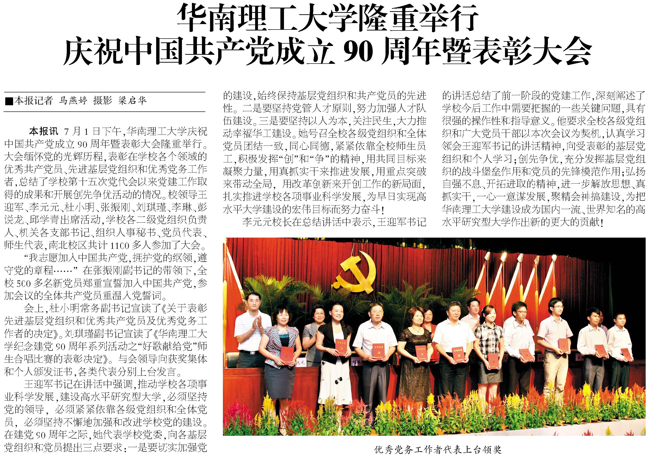 2011年7月1日华南理工大学隆重举行庆祝中国共产党成立90周年暨表彰大会