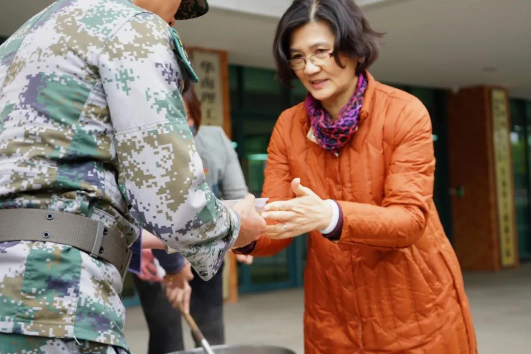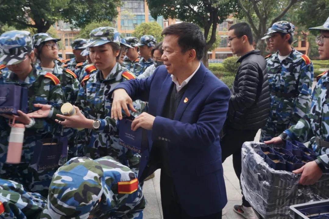 随后林影院长、张蔚洁书记、吴振强副院长、王菊芳副院长、王燕林副书记和辅导员杨崇毅将准备好的绿豆汤、巧克力和苹果分发给教官和同学们。