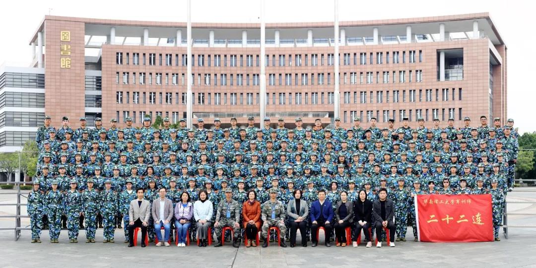 慰问结束后,学院领导与2021级各班班主任和学院全体参训学生、教官在图书馆门前合影留念。
