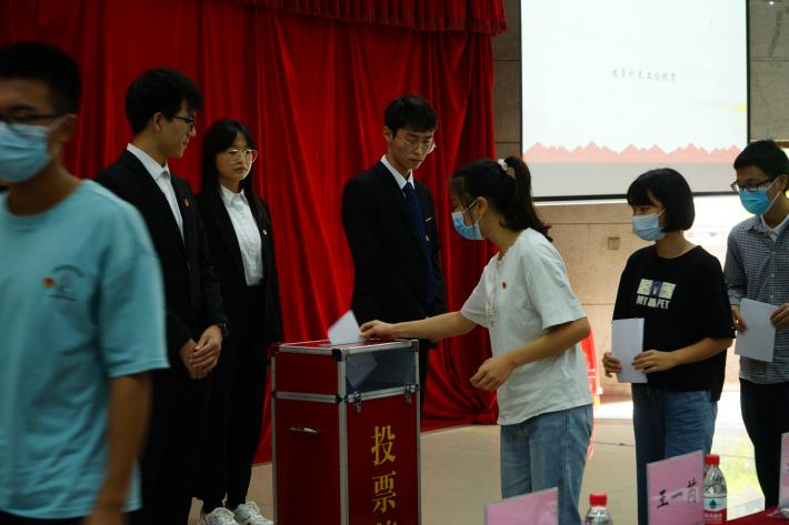 团委副书记蔡娟云代表第九届第一任团委 团员代表有序上台投票