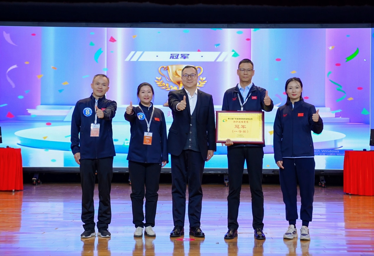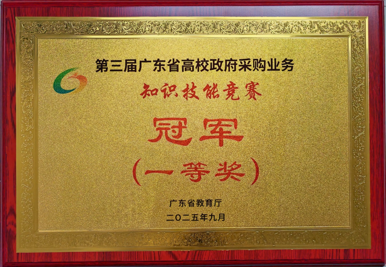 2025年11月20日,广东省教育厅主办的第三届广东省高校政府采购业务知识技能竞赛决赛在珠海科技学院举行。我校派出招标中心冯永波(领队)、文露、谢振合、茹秋平(3名队员)参赛,团队荣获冠军(一等奖),文露荣获“最佳风采奖”。