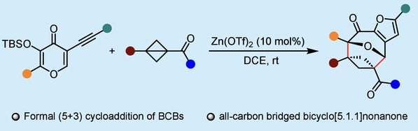 153. Penghui Yan , Tongxiang Cao*, Shifa Zhu*, Intermolecular (5+3) Cycloaddition of Bicyclo[1.1.0]butanes with Oxidopyrylium, Org. Lett. 2026, 28, 2759-2764. DOI: 10.1021/acs.orglett.6c00295