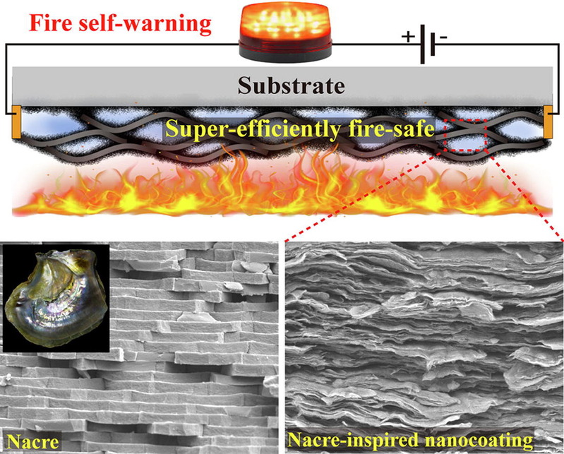A highly efficient flame retardant nacre-inspired nanocoating with ultrasensitive fire-warning and self-healing capabilitiesHuali Xie, Xuejun Lai*, Hongqiang Li, Jiefeng Gao, Xingrong Zeng*, Xiaoyi Huang, Xiaoyong Lin Abstract: Design and exploitation of flame retardant coatings with sensitive fire-warning response and self-healing capability are urgently needed to decrease the fire risk of combustible materials. Herein, we reported the fabrication of a novel multifunctional flame retardant nanocoating created by using graphene oxide (GO) and functional cellulose (FC) via one step self-assembly. The prepared nacre-like nanocoating endowed many kinds of combustible materials (including polypropylene, polyurethane foam and wood) with exceptional fire safety. All the coated substrates were self-extinguished in the flame retardant tests. More importantly, when being attacked by fire at the very early stage, it triggered the fire-warning in less than three seconds through the dramatic decrease of electrical resistance. Moreover, the nanocoating exhibited outstanding self-healing capability at room temperature. Due to the multiple hydrogen bondings between the ureido pyrimidinone groups on FC, the damaged coating could be healed successfully and almost recovered to its original integrated performance. Our work provides a new and effective route to remarkably improve the fire safety of the combustible materials, exhibiting an enticing prospect for its application in the fields of building, transportation and electrical equipment.